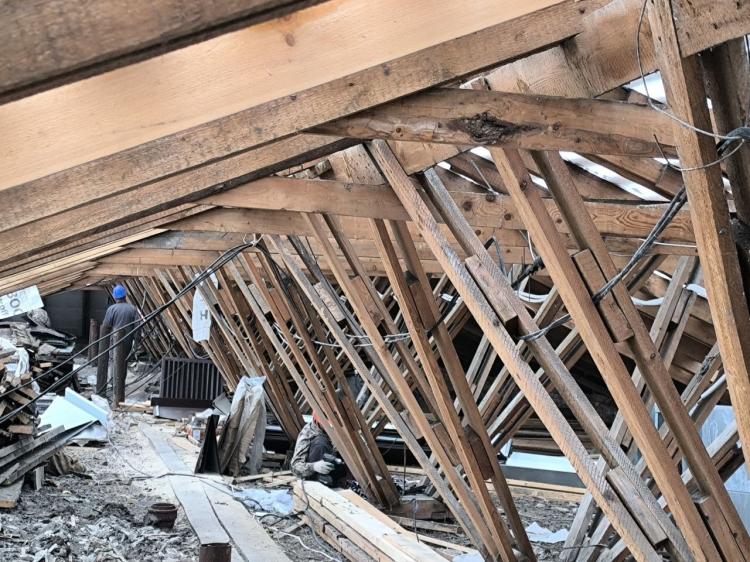 "Частично заменили стропила, обновили обрешетку, пароизоляцию. Убрали старую вентшахту и фановую трубу, ограждение. Погода сильно вмешивается в нашу работу. Эту крышу сделать можно за полтора месяца, а уже месяц прошел, но мы сделали из-за дождей пока еще половину. Проблем с протоплением пока не было. Полностью крышу не открывали, работали участками", - поделился мастер строительной бригады компании "ПроектРемСтрой" Дмитрий Бердников.