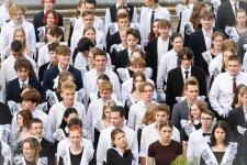 Особую торжественность мероприятию придала трогательная церемония до начала события – молодые люди возложили цветы к городскому мемориалу в сквере Прощания, отдав дань уважения учащимся школ города, не вернувшимся с Великой Отечественной войны.