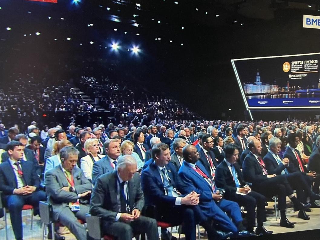 XXVIII Петербургский международный экономический форум проходит в этом году под девизом "Общие ценности – основа роста в многополярном мире". В пленарной сессии также участвуют президент Республики Индонезии Прабово Субианто, советник по национальной безопасности, командующий королевской гвардией Королевства Бахрейн Насер Бен Хамад Аль Халифа, заместитель премьера Государственного совета Китайской Народной Республики Дин Сюэсян и вице-президент Южно-Африканской Республики Пол Машатиле.