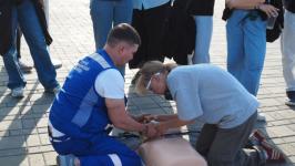 Мастер-классы от станции скорой медицинской помощи всегда собирают много желающих. Этот раз не стал исключением. По традиции медики привезли с собой специальные манекены, на которых учили горожан отрабатывать жизненно-важные навыки.