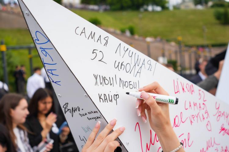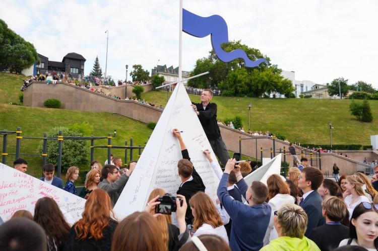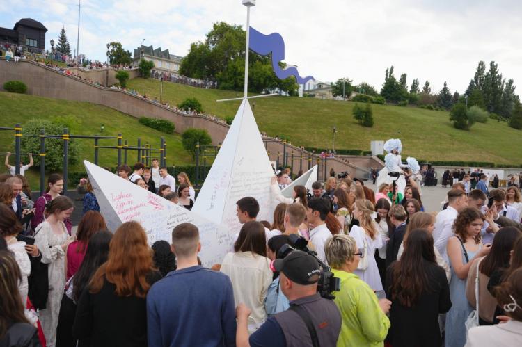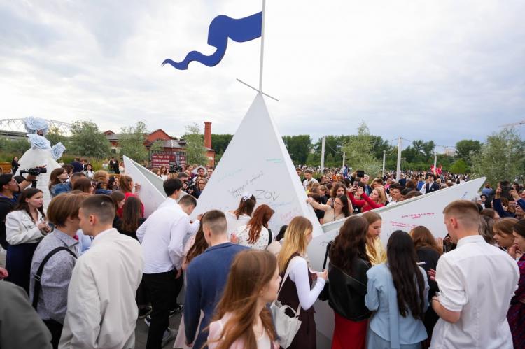 Ещё одной особенностью мероприятия стал арт-объект. Символом выпускного выбрали кораблик, означающий начало большого жизненного пути. Каждый выпускник смог оставить на нём своё напутственное послание. Оставил своё напутствие выпускникам и глава города.