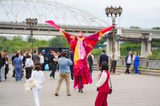 "Сегодня наша набережная наполнена яркими красками и праздничным настроением, зарядом энергии, молодости и красоты", - поприветствовал выпускников Максим Афанасьев.