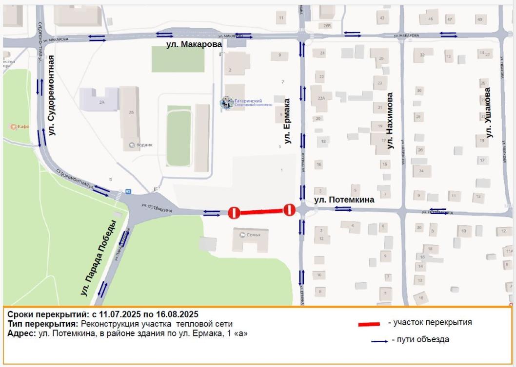 Движения транспорта прекратится на автомобильной дороге по ул. Потемкина в районе здания 1а по ул. Ермака с 11 июля по 16 августа, сообщает администрация Тюмени.
