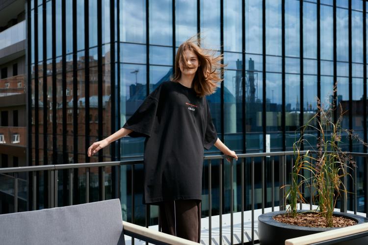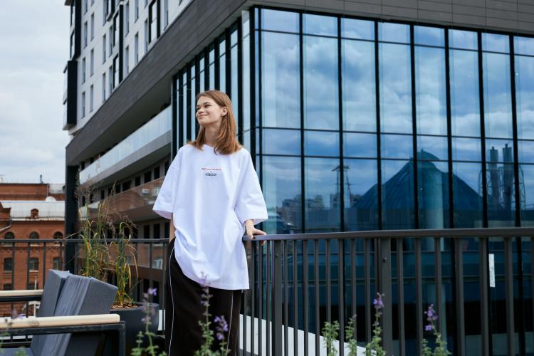 "Это коллаборация двух смелых брендов, которые не боятся экспериментировать и менять привычное. Кто продумывает детали и в равной степени не любит, когда что-то сковывает движения, будь то планировка или одежда. На футболках изображены знаковые проекты "Брусники", в числе которых портальный кран “Ганц”, ставший одним из символов жилого района “Речной порт”", - уточнили в компании.