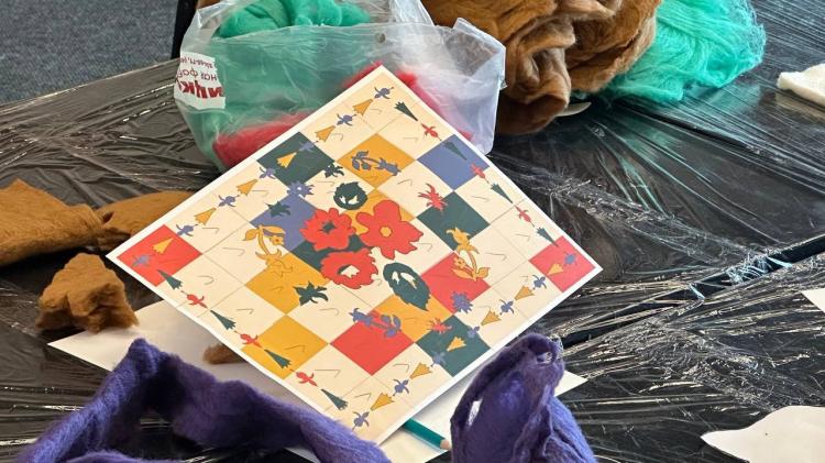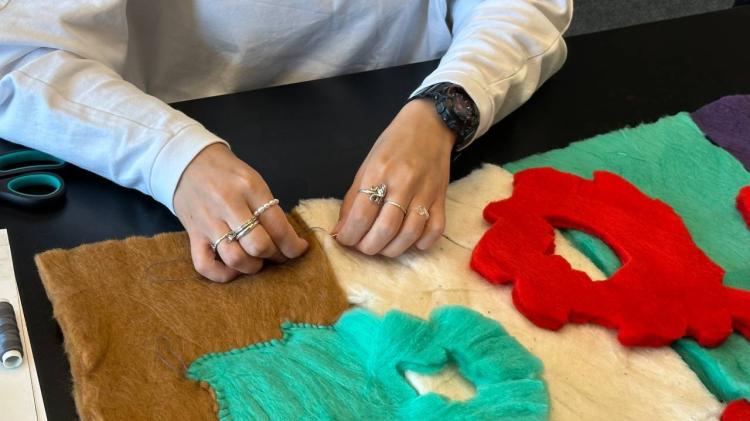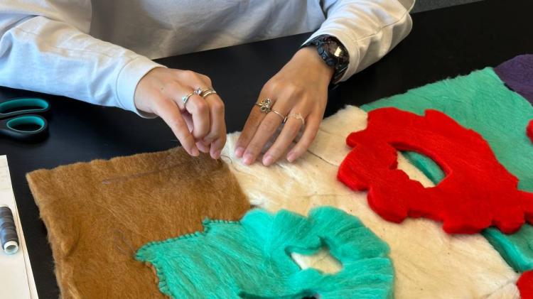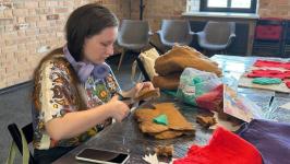 В лаборатории 15 горожан в течение первой недели валяли шерсть для ковра. На этой неделе участники под руководством Дианы вырезают детали и основу и сшивают их вместе.
