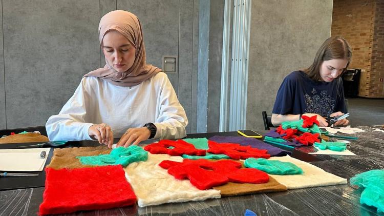 "Я тюменская художница родом из Чечни. Это сильно влияет на мое творчество. На лаборатории мы совместно с горожанами делаем ковер, который отражает сразу две культуры. Ковер в технике ручного валяния — это чеченская традиция, а рисунок я подсмотрела на тюменских коврах. Эта смесь двух культур отображает и меня", - рассказала Диана.