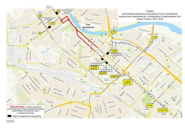 После проведения праздничных мероприятий горожане смогут воспользоваться следующими маршрутами спецрейсов: № 2, 15, 17, 20, 25, 28, 30, 39, 47, 48, 55, 70.