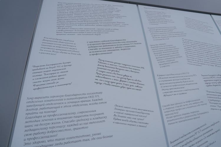 Первое, что бросается в глаза, — композиция, посвященная медицинским работникам.