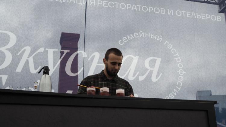 Бармены тоже поразмышляли на тему местных специалитетов. Один из конкурсантов Антон, представлявший барное пространство Bullwar Bar, представил на сую жюри коктейль, которому он дал название "Сибирский бриз". По его словам, это не просто напиток, а путешествие по Тюменской области в одном глотке.