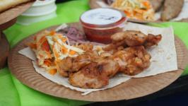 Коллектив ресторана "Грузинки Нани" специально для фестиваля презентовал люля-кебаб из курицы в лаваше с клюквенным соусом в сочетании со свежими овощами.