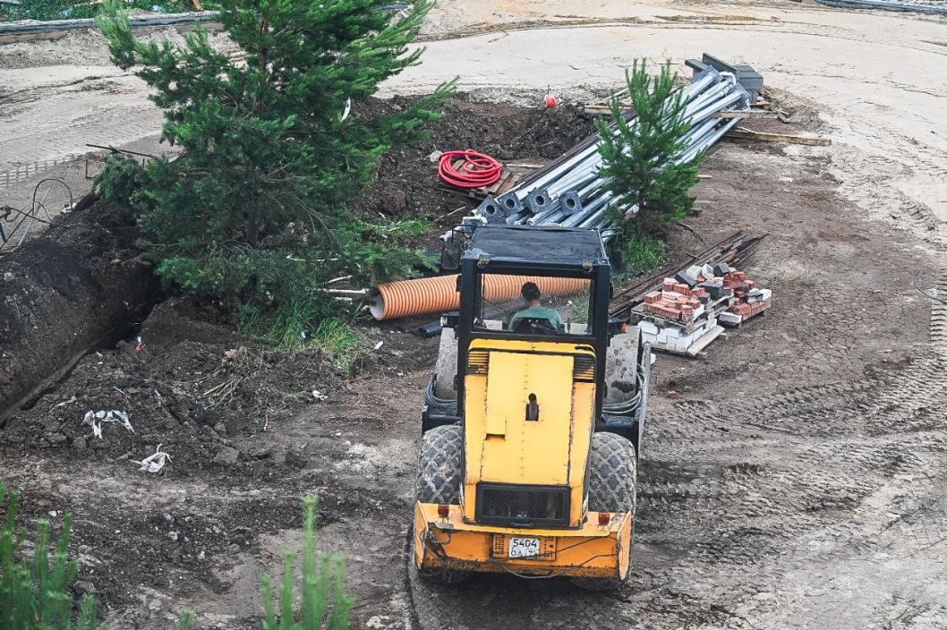 Строители благоустраивают территорию у новой школы в селе Мальково Тюменского района
