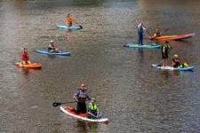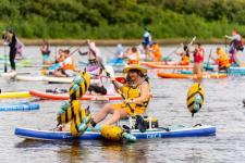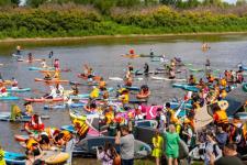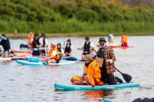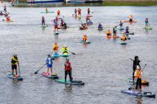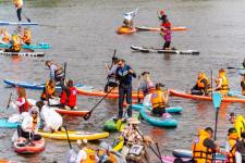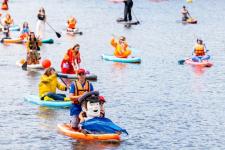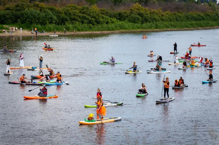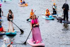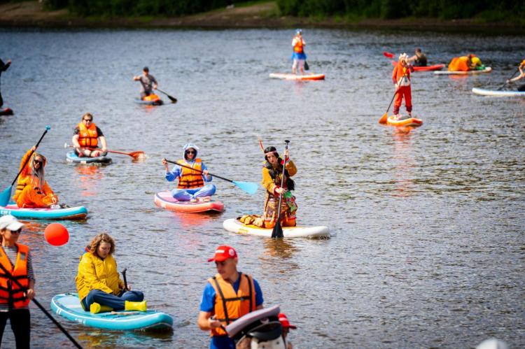 Было несколько номинаций: "Лучший костюм", "Командный заплыв", "Лучший декор сапборда", "Лучшее фото", "Я и ценный пассажир" (заплыв с питомцами), "Русский культурный код", "Мисс SUP".