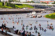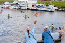 Отметим, Николай Бабкин впервые плыл на сапе. “Ощущения неповторимые. Очень весело. Было немного трудно: руки устают”, – поделился впечатлениями он.