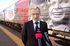 "Может быть, это будет не поезд, а что-то в виде импровизированной колонны с новой техникой, средствами ведения боевых действий. Думаю, такой проект должен состояться", — добавил он.