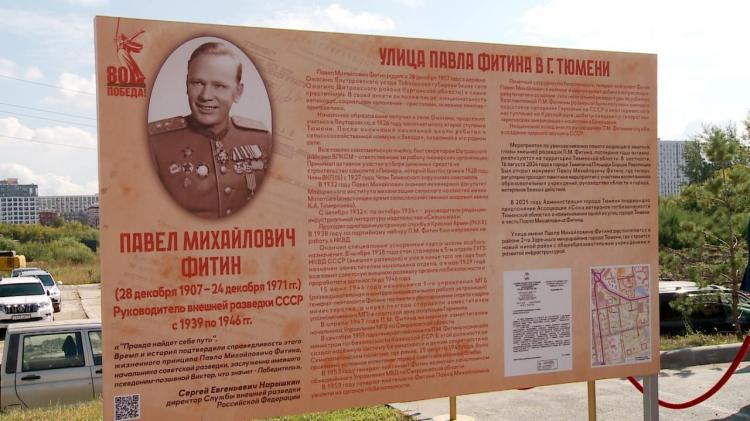 Улицу имени Павла Фитина, руководителя внешней разведки СССР в годы Великой Отечественной войны, торжественно открыли в Тюмени 16 августа. Церемонию приурочили к 80-летию Великой Победы и празднованию Года Героев в Тюменской области. Новая улица появилась в Заречной части областного центра между улицами Бийская и Ижевская.
