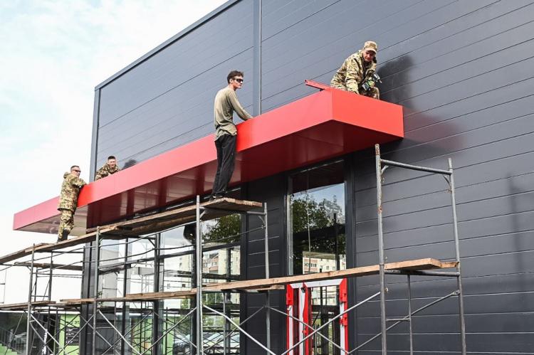 Строящееся здание между "Волной" и "Рыбой-пилой" отдадут в пользование одной из сети быстрого питания в сентябре.