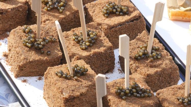 Авторские эклеры с форшмаком и щучьей икрой, паштет из куриной печени, а также омуль слабосоленый и смалец, оформленный под медовик, украшение - черная икра. Сет для участников Промышленно-энергетического форума TNF разработали в баре "Д.Иванович" по ул. Кузнецова в Тюмени.