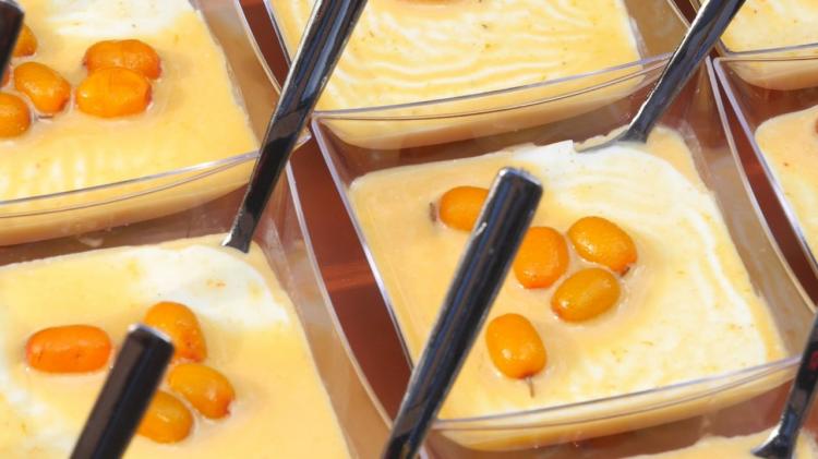 "В форшмаке замес из белого соуса и слабосоленого омуля, внутри щучья икра и зелень. Сало решили подать в виде медовика, потому что это авторское виденье нашего шеф-повара. Весь сет разработали специально для гостей форума TNF. На десерт сибирская панакота с облепихой", - рассказал сотрудник бара "Д.Иванович" Андрей Боров.