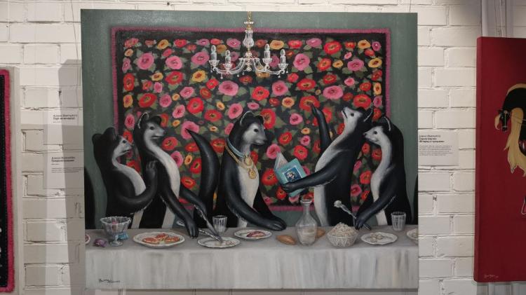 "Решила переосмыслить ремесленническую культуру в этих картинах. Здесь квинтэссенция всего, что я узнала за последнее время. Естественно присутствуют соболи как символ области, где-то отсылка к сказкам Ершова", - дополнила автор.