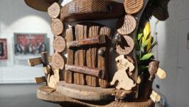 На выставке нашли место и вазы из прикорневого капа и богато декорированный синичник известного в Тюмени и за ее пределами мастера Владимира Сорокина.