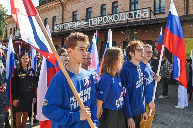 Масштабное патриотическое мероприятие – шествие в честь Дня Государственного флага – началось в Тюмени у Конторы параходства и завершилось на мосту Влюбленных водружением триколора на верхний пилон сооружения 22 августа. Событие традиционно организовали активисты "Молодой гвардии", акция проводится уже более 10 лет.