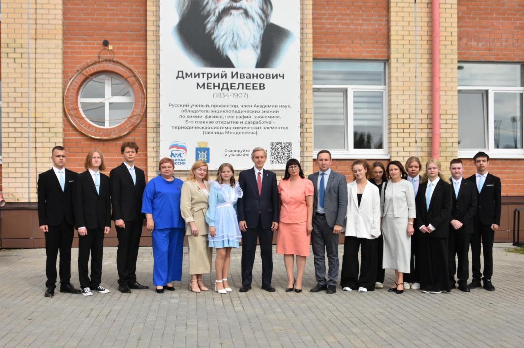 "Современная школа не только учит, но и воспитывает ребенка. Цель проекта "Лица героев" - на примере наших героев-земляков воспитать в школьниках гордость и уважение к истории родного края. На фасаде школы №3 размещен баннер, посвященный нашему великому земляку Дмитрию Ивановичу Менделееву", - отметил Андрей Артюхов.