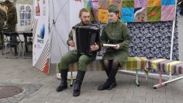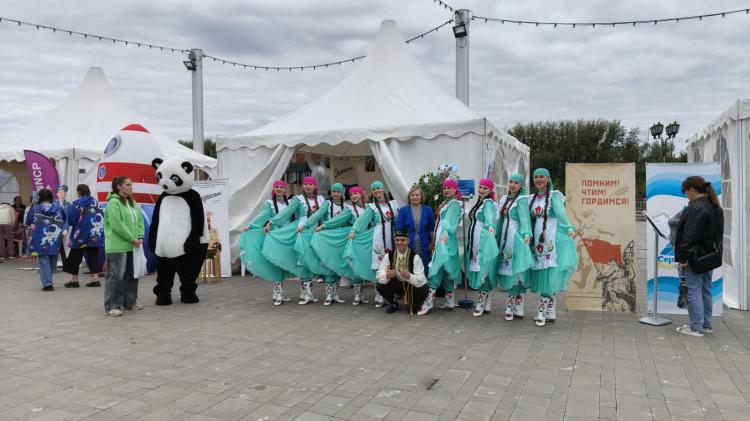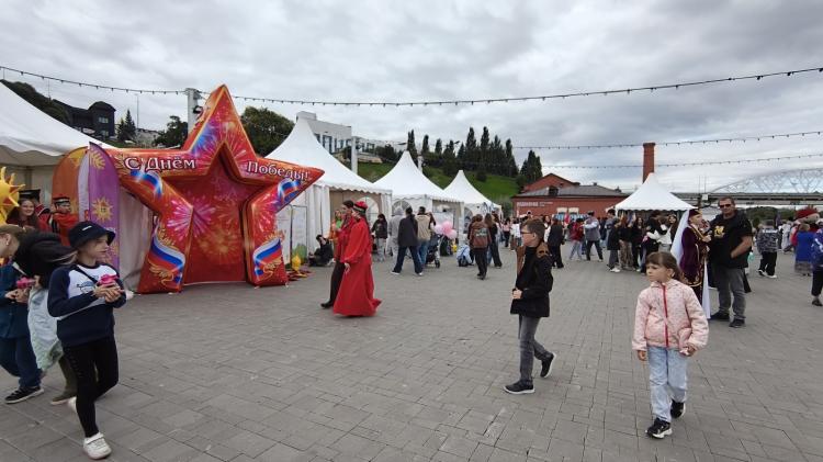Возле мультицентра “Контора пароходства” была открыта площадка по военно-патриотическому воспитанию. Здесь предлагали присоединиться к плетению маскировочных сетей, посмотреть образцы вооружения, написать письма бойцам СВО, исполнить песни военных лет с баянистом. Желающие могли пройти квест “Город трудовой доблести”, разработанный “Ребячьей республикой”.