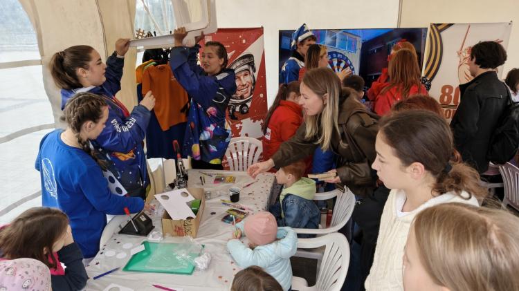 Здесь горожан знакомят с историей космонавтики, героем Советского Союза Юрием Гагариным, направлениями деятельности детского центра. Юным тюменцам предложили прикладные мастер-классы по блеск-тату, эпоксидной смоле, изготовлению значков. Также работала игровая площадка с мини-квестом. Посетители площадки могли получить сувенирную продукцию, сладкие призы.