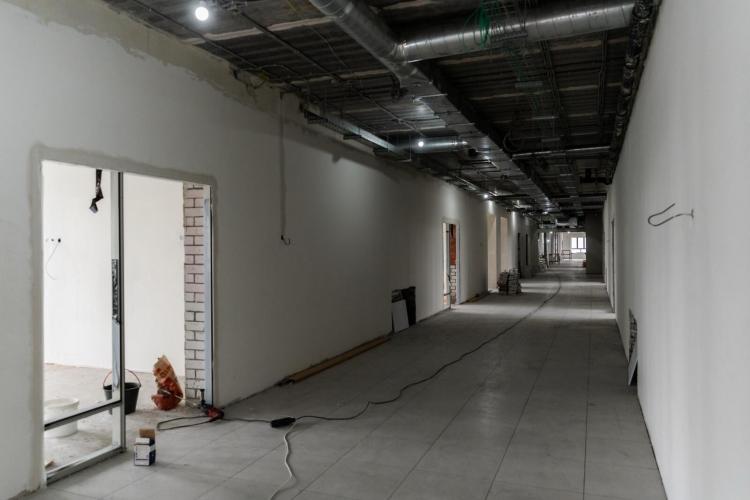 На объекте трудятся более 150 рабочих. Они наклеивают обои, монтируют потолки, укладывают плитку в санузлах. Впереди отделка коридоров декоративной штукатуркой. Чистовую отделку строители планируют завершить до конца ноября 2025 года. Общая площадь здания – 21 тыс. 138 кв. метров.