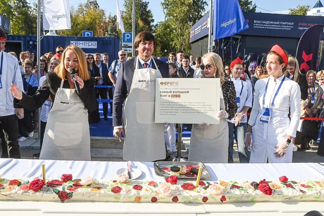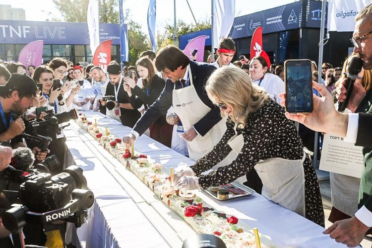 Торт длиной 10 метров 35 см впервые приготовили кондитеры на X Промышленно-энергетическом форуме TNF 18 сентября. Рекорд зафиксировали представители Федерации ревизоров гостеприимства в рамках Всероссийского фестиваля аномальной гастрономии.