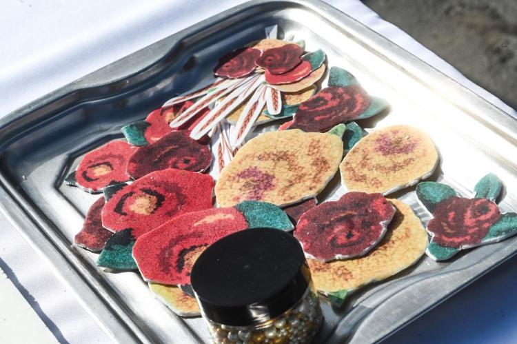 Примерно час потратили мастера на декорирование торта. В ход пошли живые розы, сахарные цветы, бусы, колоски и розы, напечатанные на принтере. Все съедобное, отмечают кондитеры.