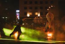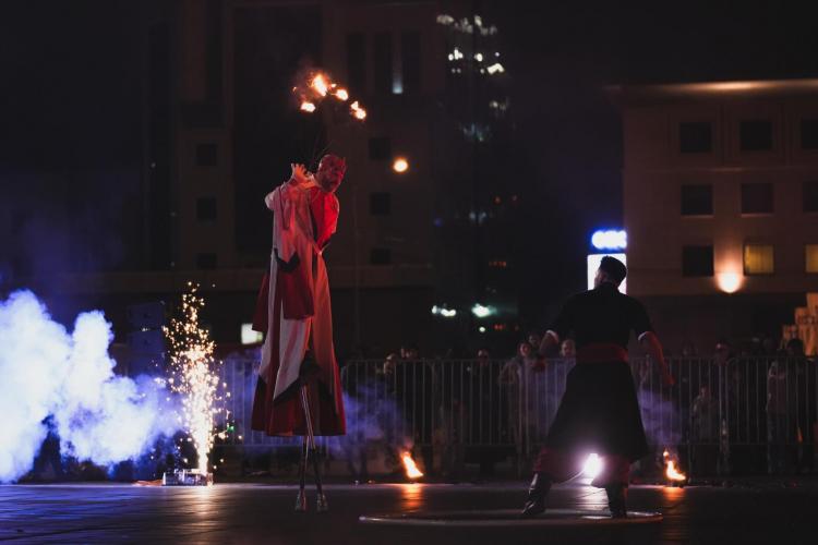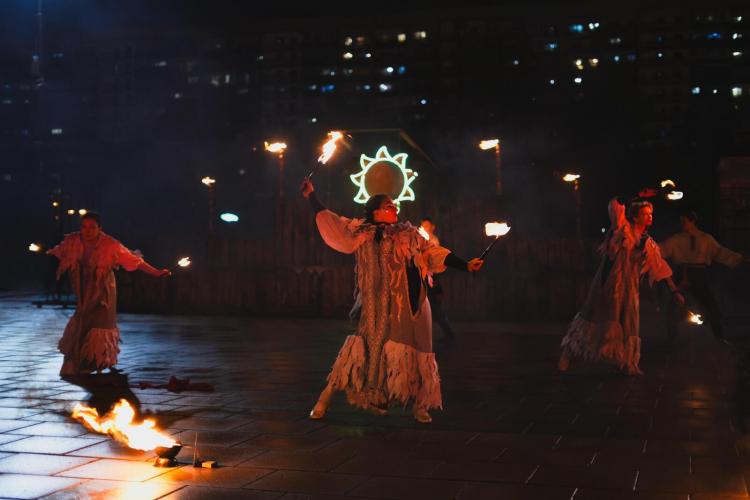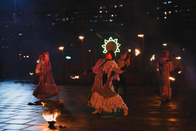 Артисты представили более 20 видов огненного реквизита и пиротехнические залпы. Зрители увидели в постановке Ермака на колесе Сира, царя на полуметровых ходулях, акробатов.