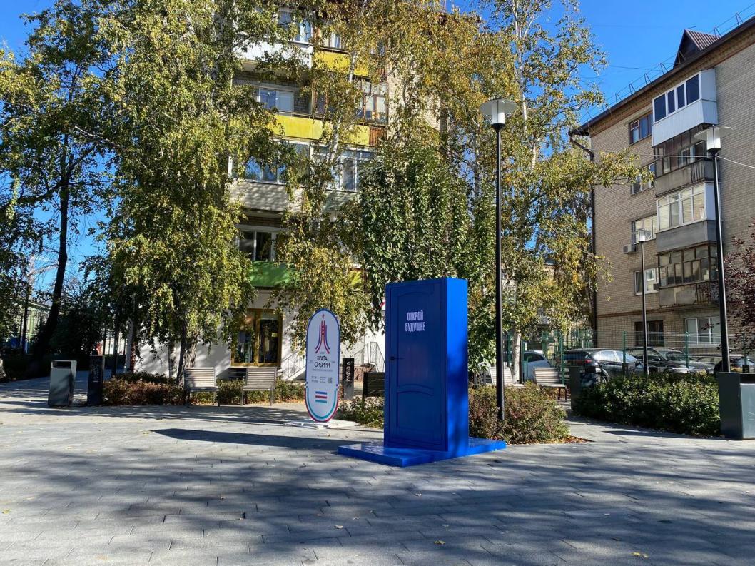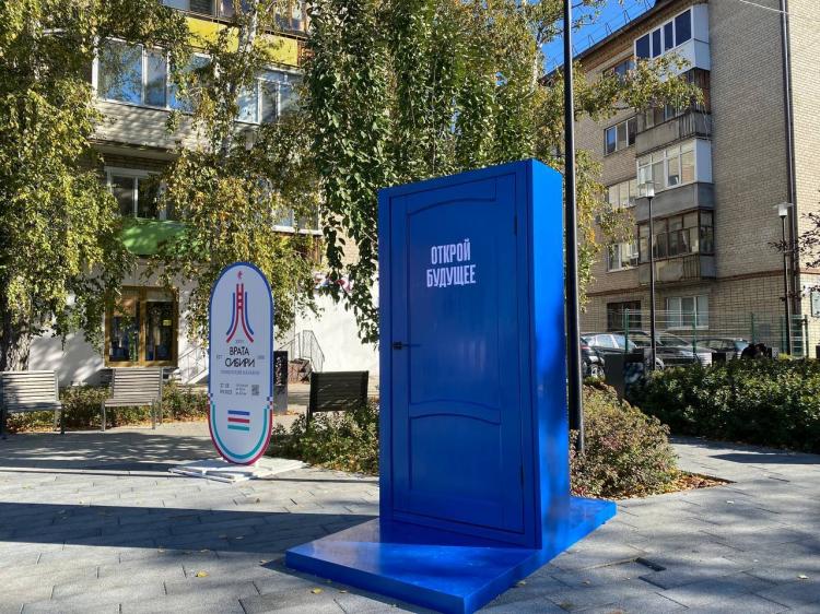 Интерактивную дверь в Тюменский межвузовский кампус "Открой будущее" установили на пешеходной ул. Дзержинского. Она наполнена различными смысловыми иллюстрациями и снабжена информацией о строительстве кампуса.