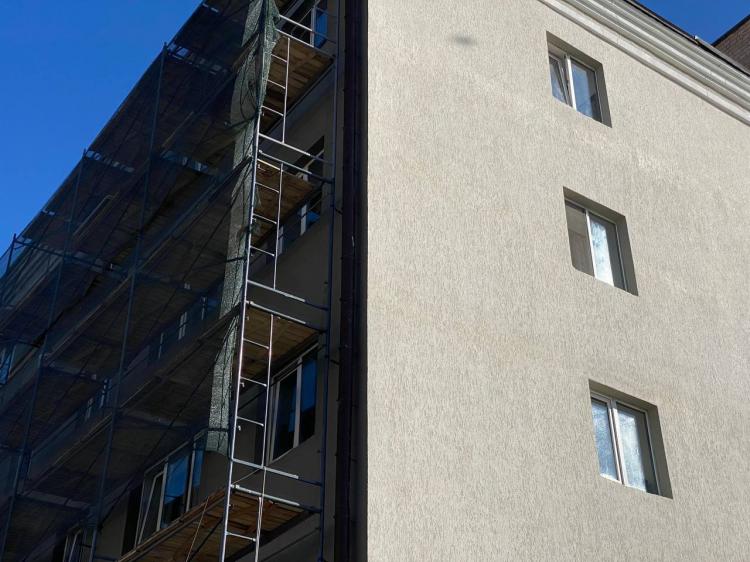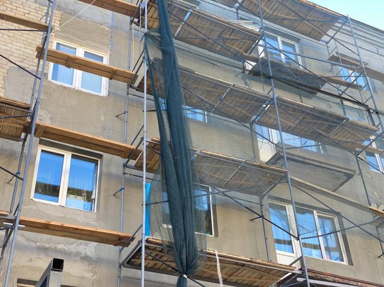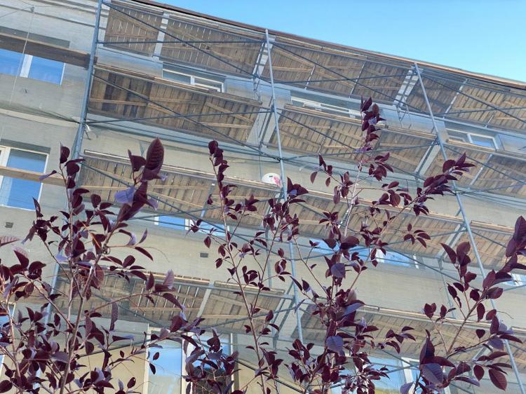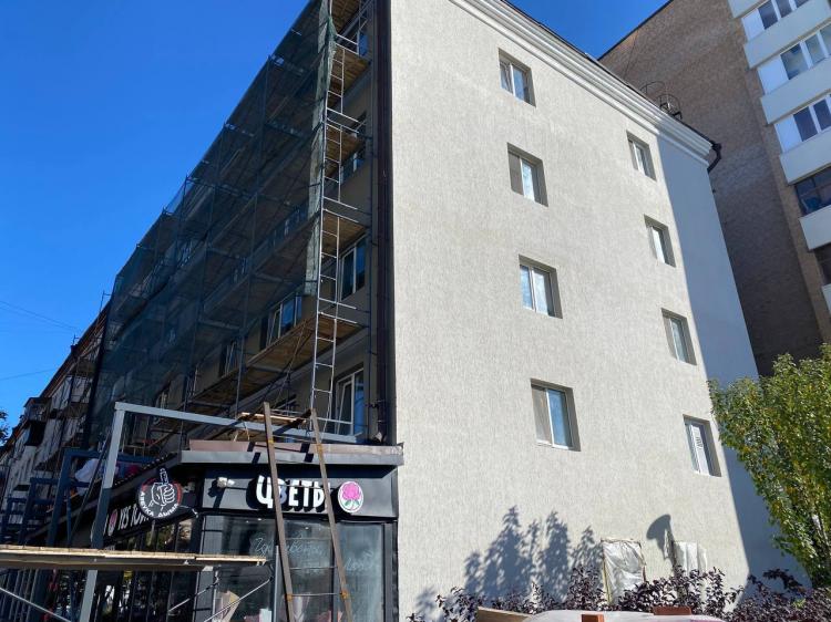 Ремонт фасада пятиэтажки на ул. Дзержинского в Тюмени идет полным ходом. Стены, что выходят на Республики и Володарского, полностью обновлены. Работы завершат до конца 2025 года.