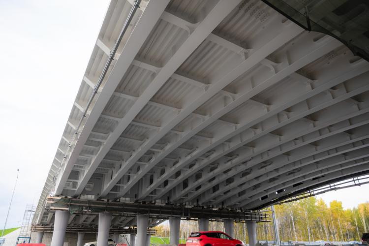 Также на объекте продолжается укладка асфальтобетона, уже уложено около 38 тыс. тонн асфальтобетонного покрытия. Завершаются работы по устройству инженерных коммуникаций. Всего на объекте трудятся более 270 человек, сообщает пресс-служба МС-11.