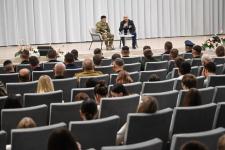 "Казалось бы, всего три года, но за это время мы пережили очень многое. Часть бойцов вернулась домой, кто-то принял решение пойти на линию боевого соприкосновения. И сегодняшняя встреча особенно значима для нас, потому что бойцы, которые сидят в первом ряду, уже знакомы с войной. И именно они в процессе живого общения расскажут вам настоящую историю", - сказал Роман Рзаев.