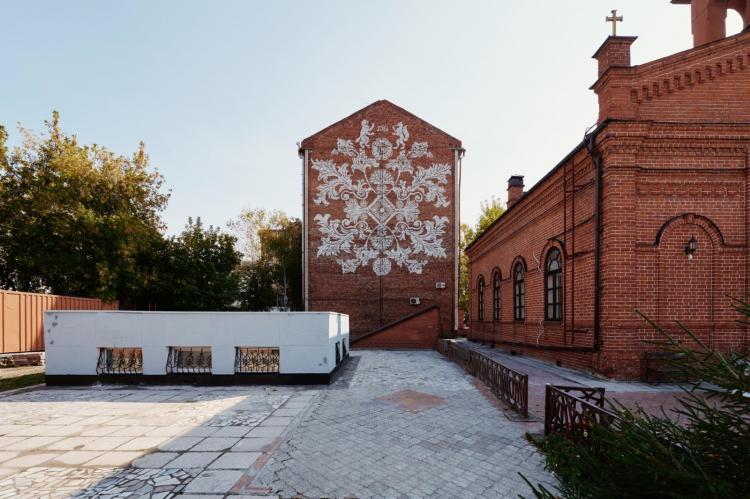 Мурал "Кружевной узор наличника" появился на доме № 9 по ул. Ленина в Тюмени. Его создала художница, иллюстратор и куратор выставок совриска Александра Жернова. Она изобразила узор, похожий на тот, что украшал ладью, на которой по Туре приплыли основатели города в 1586 году, сообщают организаторы проекта "Морфология улиц".
