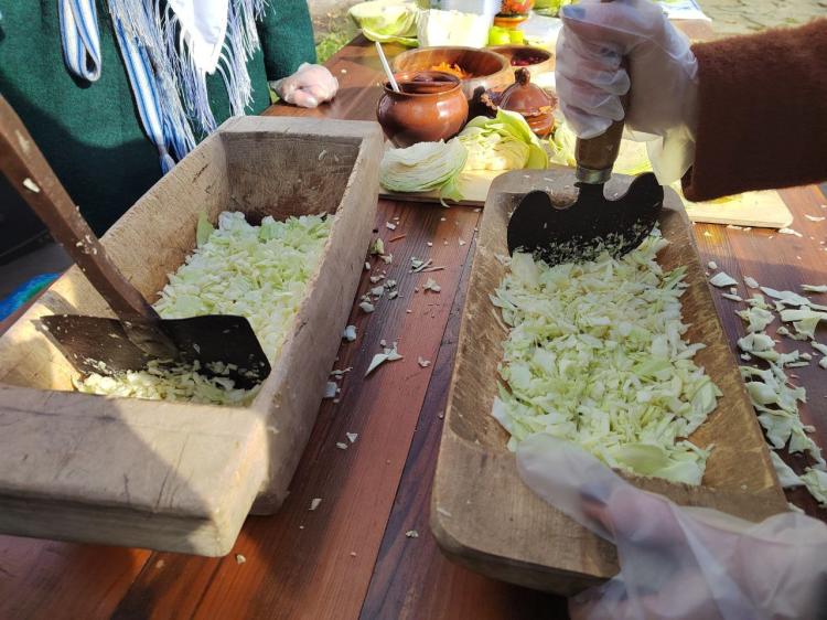 "Сегодня мы капусту и рубим, и солим, и даже лепим с ней пельмени. По секретному рецепту, никому не рассказываем! Пробуйте - очень вкусно!", - поделилась режиссер мероприятий Екатерина Ракова.