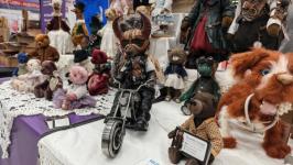 Интерьерных мишек представила мастер Оксана Волохова. Она шьет изделия из винтажного плюша. Фишка в том, что игрушки набивают кедровыми опилками, у них есть пять шплинтовых металлических креплений. Этой технике изготовления более 100 лет.