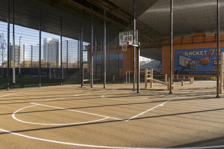 Горожанам стал доступен участок со спортивной инфраструктурой: под Профсоюзным мостом расположено поле для мини-футбола, площадка для баскетбола, а также зона воркаута. В дневные часы спортивные объекты открыты для всех желающих. Открыли и участок для прогулок — помимо дорожек, здесь есть зоны отдыха и детская площадка.