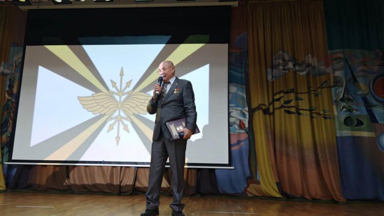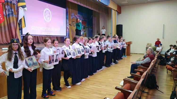 Перед учащимися 5–9 классов выступили представители регионального отделения "Бессмертного полка России" во главе с Геннадием Ивановым: ветеран-связист полковник в отставке Александр Бухарин, а также военнослужащие войск связи.