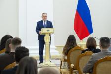 "Уже в скором времени ваши знания, умения и труд будут определять вектор социального и экономического развития нашего региона и страны. Именно вам принадлежит будущее России. Наша задача как правительства региона создавать условия для полноценного развития молодежи. В области реализуются масштабные проекты по науке и технологиям, появляются уникальные пространства, функционируют три образовательно-производственных кластера федерального проекта "Профессионалитет". В рамках нацпроекта "Молодежь и дети" реализуется и главный проект – строительство межуниверситетского кампуса", - сказал губернатор Тюменской области Александр Моор, приветствуя талантливых молодых земляков.