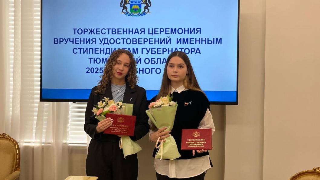 Студенты Тобольского медицинского колледжа им. В. Солдатова Абидат Исаева и Дарья Курмышкина. Стипендиатами губернатора в Тобольском многопрофильном техникуме стали Анастасия Ишкова и Дарья Масеева.