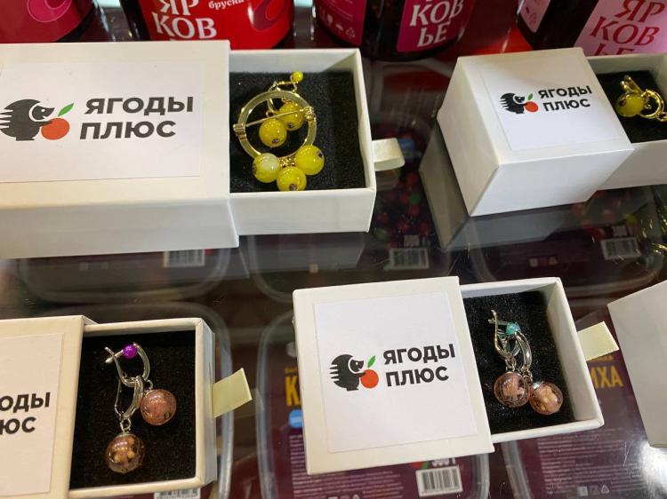 Компания "Ягоды плюс" представляет на выставке новинки: вяленые ягоды, варенье и украшения. Серьги с черникой получил в подарок для супруги Артём Жога.