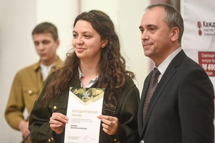 Участница поискового отряда школьников "Савояр" Ольга Яндиева из тюменского лицея № 93 в поисковом движении три года. За это время девушка побывала в четырех экспедициях в Смоленской, Калужской и Новгородской областях. Весной их отряд нашел под Новгородом останки 10 бойцов. Сама школьница смогла также отыскать личное обмундирование и фрагменты одежды.