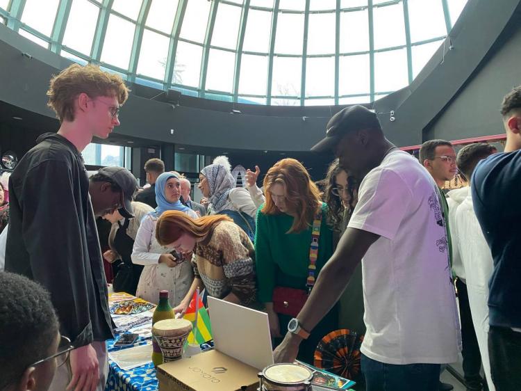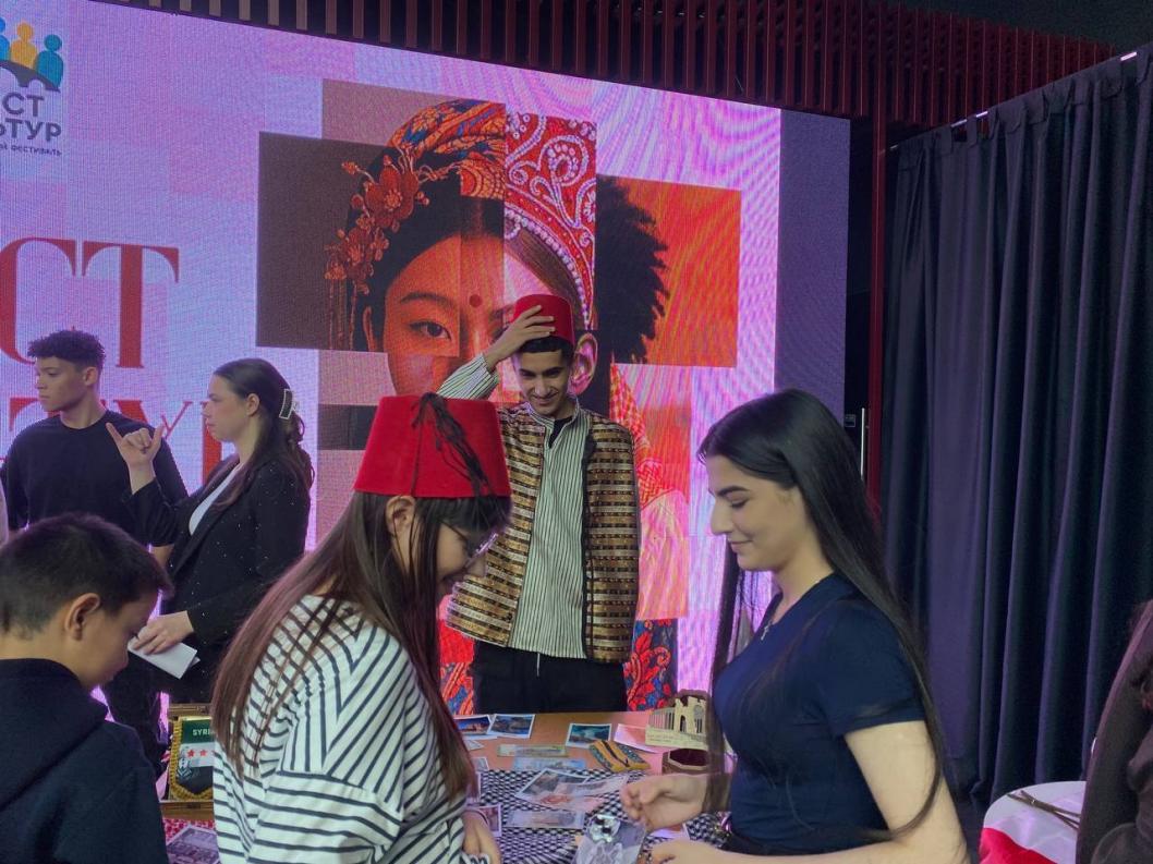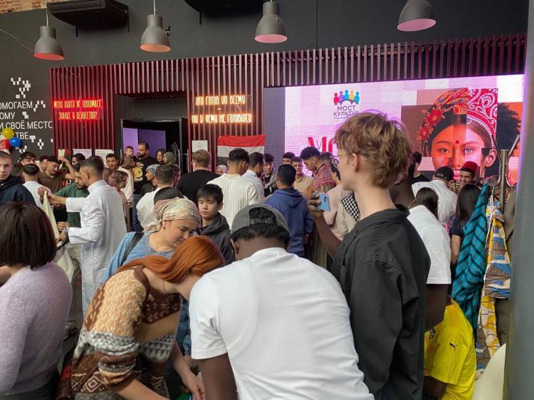 Холл "Космоса" едва вместил всех желающих представить и увидеть самобытность различных культур. Около 20 станций организовали студенты для гостей. На них предлагается отгадать загадки, решить задачи, нарисовать орнаменты, примерить головные уборы, надеть сари, сыграть на африканских барабанах и исполнить египетский танец, многое другое.