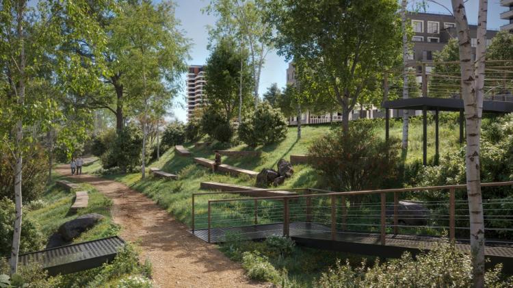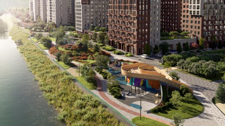 На набережную будет выходить бульвар Артура Ольховского, который компании также благоустроят совместными усилиями, каждая свой участок. Здесь появятся детская площадка, спортивная инфраструктура, зоны отдыха, сад трав и небольшой пруд.