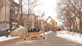 На территории также размещены скульптура "Геологоразведчикам", качели, арки, высажены сирень и гортензии. Девять информационных стендов с архивными фото и QR‑кодами, дающими доступ к книгам о геологии, придают пространству информационно‑образовательный характер.