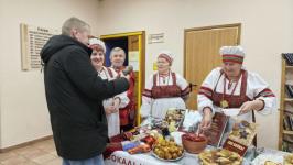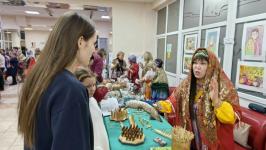 В холле развернулась выставка-ярмарка декоративно-прикладного творчества, мастер-классы, выставка-дегустация национальной кухни.