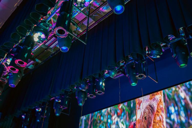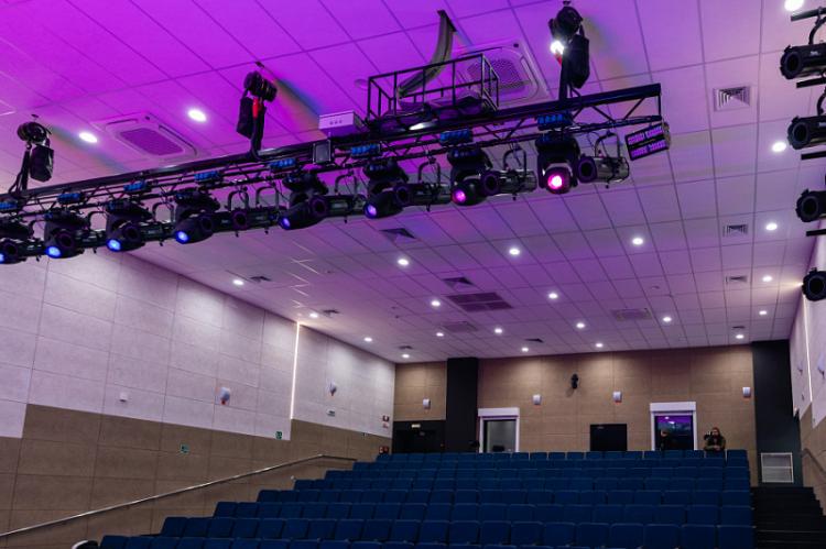 Современные подвесные конструкции сцены позволят проводить театральные постановки и концерты без микрофонов. Помимо основной сцены, в центре досуга и творчества оборудованы репетиционные и хореографические залы, студия звукозаписи и театральные мастерские. Для специалистов приобретена новая мебель и техника, а в холле и на фасаде здания скоро установят LED-экраны для трансляции объявлений и видеоматериалов.